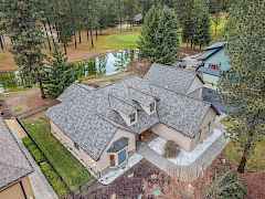 Beautiful custom-built home w/covered patio overlooking the pond between the 14th & 15th fairway of the Chewelah Golf & Country Club. Features include natural slate & hardwood floors, & expansive living room w/stacked rock gas log fireplace. Classic natural cherry cabinets, granite counters, high-end stainless-steel appliances & pantry. Primary Bedroom on main has soaking tub & custom tile walk-in shower. Main floor also includes a den/office w/custom cabinetry, laundry room, & an upstairs bonus room affords over 500 sq ft of optional living space. Enjoy the professionally landscaped yard w/exposed aggregate walkways, back up auto generator & paved driveway. There's an oversized 2-car garage, plus a 22 x 30 fully finished detached shop for all your toys. Golf Course living at its best!