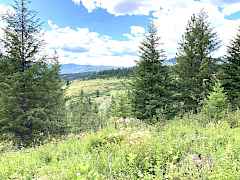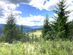 Directions: "From Kettle Falls, take the Inchelium Hwy South to 'Barnaby Creek' Rd. Take a right, drive a couple miles to the road-sign 'Buffy Lane' and the Windermere RE sign on the fence. Turn right, cross the cattle guard and go about 2 miles up the mountain road."
