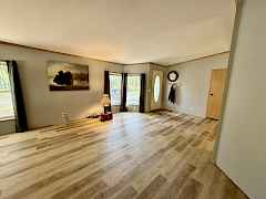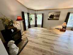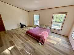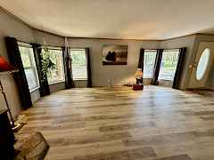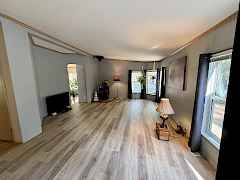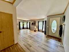 A property like this is rare—4+ level, park-like acres wrapped in total privacy, yet minutes from the water and an easy drive to town. Discover a peaceful retreat tucked into nearly five acres where sunlight filters through mature trees and quiet comes naturally. This single-level home offers a thoughtful layout with two bedrooms, two baths, and fresh LVP flooring in the living room and primary suite. A cozy pellet stove warms the heart of the home, while the dining room and additional breakfast nook create inviting spaces for gathering. Step from the primary bedroom into your own private oasis—an open-air gazebo already wired for a hot tub and perfectly placed for quiet mornings or star-filled evenings. Outside, a circular driveway sweeps around the home and leads to two carports, three