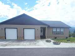 Built in 2022, this stunning home offers contemporary living paired with breathtaking mountain views, visible from the expansive back deck and numerous windows throughout the property. Nestled in the desirable Pinebrook Addition on nearly an acre, the 3-bedroom, 2-bathroom residence blends comfort, style, and efficiency. Notable features include a durable 20-year composite roof, fiber cement siding accented with stone trim and ridge shake details on the gables, and low-maintenance composite decking. Energy efficiency is prioritized with an inverter heat pump and vinyl windows that maximize natural light and insulation. The chef's kitchen is equipped with sleek stainless-steel appliances, including a double oven and beautiful granite countertops. Inside, soaring cathedral ceilings with