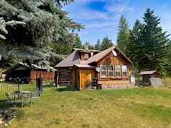 Nestled in a private, secluded setting, this charming 2-bedroom, 1-bathroom log home exudes rustic appeal. The interior boasts vaulted ceilings, beautiful stone work, and recent updates including a new forced air furnace and upgraded electrical system. The home's cozy atmosphere and enduring character create a unique living experience. Set on a sprawling 20-acre property, this retreat offers a 2-car carport and a fenced garden area perfect for cultivating your own vegetables. The southern exposure ensures ample sunlight, while the greenhouse and fruit trees provide opportunities for homegrown produce. Embrace the tranquility and natural beauty of this idyllic country getaway.