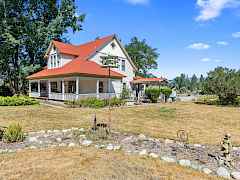 Those that have drove by this fabulous property over the years on Kettle River Rd knows exactly where this home is. This 1918 Farmhouse has it all, vinyl siding, cov. front porch, cov. over french doors off the dining rm to the huge Trex deck in the back to soak in all the beautiful views of the majestic Kettle River. 2 beds, w/an office, 2.5 baths, hardwood floors, formal din. rm, lrg farm kitchen w/gas cooktop, wall oven, 2nd sitting rm w/pellet stove, Sunroom off the kitch. overlooking river w/skylight. Laundry is on main level. Upstairs, w/high ceilings, to a beds & a bath w/a gorgeous clawfoot tub, Primary bed suite, full bath w/walk in shower, big closet, 2 wells, w/new pumps in both. Old airplane hanger, multiple outbuildings, barns on 45 ac w/pasture. easy access to river.