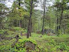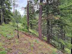 Heavily treed, level, rolling/benches, sloped