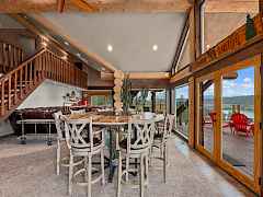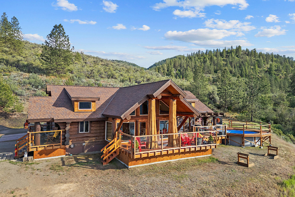 Discover this stunning 4,500 sq ft custom log home set on 40 private acres overlooking the Spokane River, just east of Lake Roosevelt. This meticulously crafted retreat offers breathtaking panoramic views, luxurious finishes & unparalleled tranquility. The gourmet kitchen is a chef's dream, featuring granite countertops, dual ovens, a gas cooktop, & a professional-grade refrigerator. Perfect for entertaining, the spacious dining room w/vaulted ceilings & the bar room both open through French doors to a newly stained deck-ideal for enjoying serene river & countryside vistas. The primary suite has a large walk-in closet & spa-like bathroom w/a tiled shower & classic clawfoot tub. Enjoy direct access to 640 acres of adjacent DNR land, 1310 line frontage & nearby the Ft. Spokane boat launch.