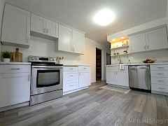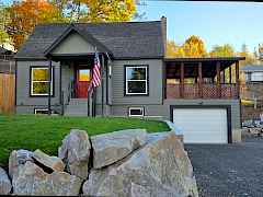 Beautifully renovated home with an extensively updated electrical system. New updates include electrical panel, water heater, energy efficient vinyl windows, flooring, cabinetry, HVAC system, electric wall heaters, & sewer line. Take in sweeping views of the city & historic flour mill from the spacious covered deck that is perfect for relaxing or entertaining in any season. The basement offers flexible space with a large recreation room, full bath, mechanical room, & an area that could easily be useful as a 5th bedroom. On an oversized lot & a half, this property offers plenty of space & extra privacy with no rear alley. Cold tolerant sod & mature fruit trees. Attached garage completes this turnkey home with major updates completed!