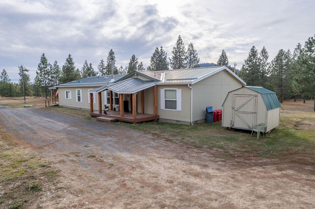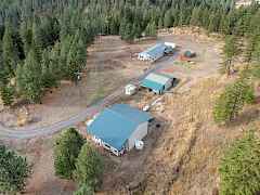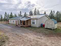 Beautiful 3 bedroom, 2 bathroom pit-set Manufactured home sitting on 37+ acres offering end-of-road privacy & seclusion. Grounds offer a mix of pasture, rolling benches & mature trees. This home has an amazing floorplan, with an overisized kitchen, open great room, living room, dining room, office with french doors and a large master suite. 2 Detached shop/garage, wood storage shed, covered front & back porches & expansive deck for BBQ'ing and entertaining. Large enclosed pen for dogs or small critters between the shops and a chicken coop with power installed.
