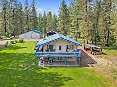 Check out this 3 Bed 2 Bath home on 10 Acres Open floor plan upstairs with large living, dining and large kitchen with island, Primary bedroom and bath. Walkout daylight basement has 2 bedrooms, 1 bathroom, office space and large laundry room. There is a large deck and patio for entertaining with a limited view of the Kettle River. This home sits just about in the middle of 10 treed acres with a ton of privacy at the end of the road, There is a 2 car carport right off the home and 2 shops one is 48X30 and the other is 32x24. Home is wired for back up generator and has Irrigation rights to a community water system. This property is close to thousands of acres of Colville National Forest.